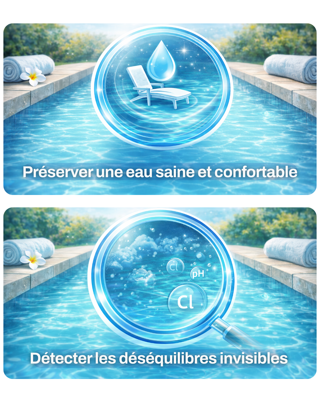 • le pH (équilibre et confort de baignade),